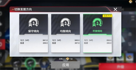 極速:削弱漂移連貫性,削弱1-100加速性能,增強最大速度和101-200加速性能