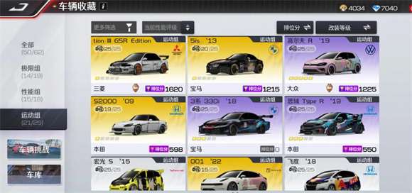 性能組:金車:蘭博基尼蓋拉多,路特斯-可白嫖圖紙。紫車:gtr,斯巴魯,三菱,領克03(素車跑分,不培養),凱迪拉克,福特-可白嫖圖紙。
