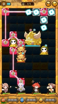 游戲的主要核心就是策略消除,玩家將會控制四名角色,通過畫線指令的方式,進行對應的移動與戰斗,消滅四人區域中的所有怪物。并且,不同的連線指令與不同的角色還可以能會觸發出多種不同的戰斗效果,玩家在每次進攻前好好的規劃四名角色的進攻路線,這樣玩家才會走的更遠。