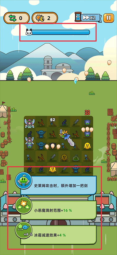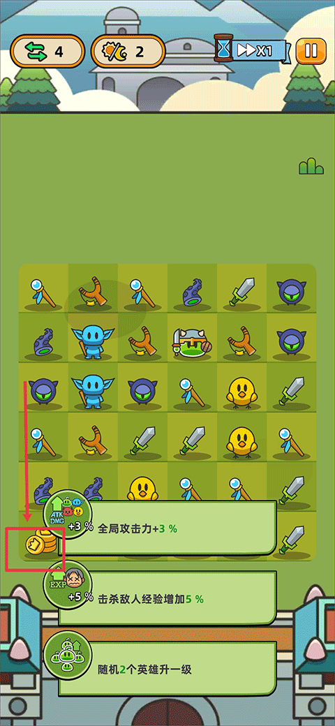 5、我方英雄在成功抵擋出現的敵人后會獲得分數,當上方進度條滿時同樣可以解鎖技能選擇功能