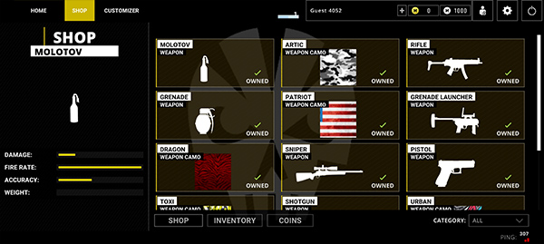 點擊customizer進入到游戲背包,選擇你需要攜帶的武器裝備;