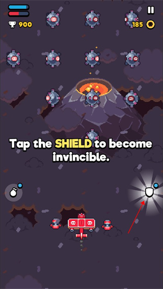 面對眾多炸彈陷阱的時候就需要點擊右邊的盾牌進行防御。