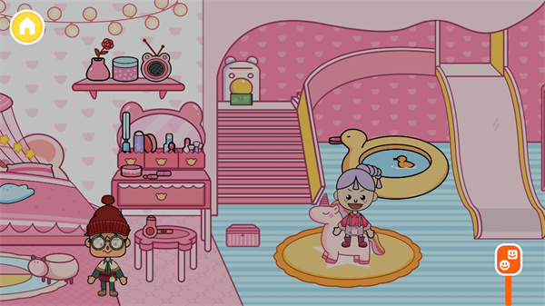 游戲里為玩家準備了多種不同類型的度假親子房。比如粉色少女房,玩家在房間內既能玩滑梯和滑板,還能開啟廚藝大比拼;機械親子房內配備了天文望遠鏡、抓娃娃機、跳舞毯等道具,能滿足男孩兒的各類夢想;海軍主題房則立體呈現出各種各樣的軍艦物品,而且還能玩滑滑梯、劃皮艇、蕩秋千等,助你實現海軍夢。
