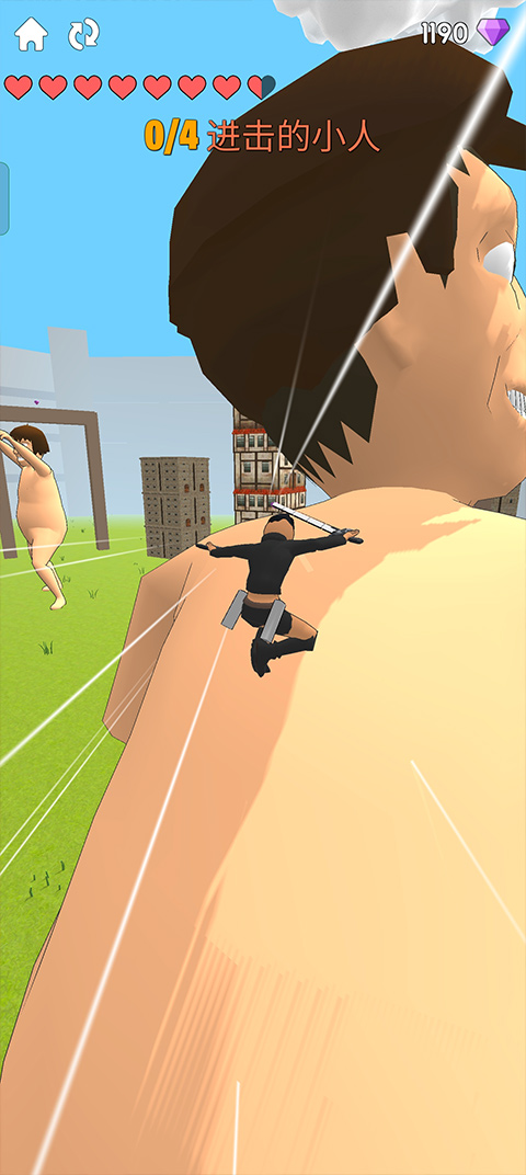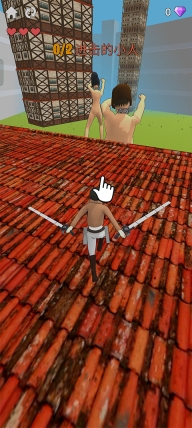 3、還能夠點擊屏幕里的建筑物,或者點擊巨人,借助抓鉤靠近巨人的脖子。