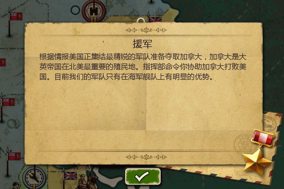 這關(guān)主要是加拿大進攻,過不過全在加拿大。但也可以自己進攻,我推薦的就是自己進攻(可以刷勛章)即用已有兵力進攻英國。