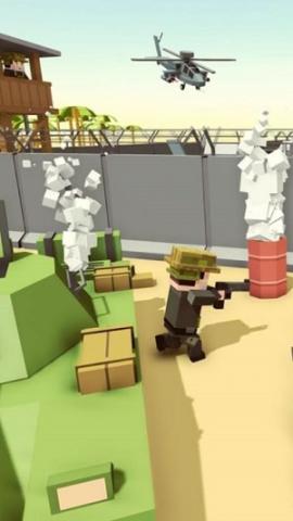 3、玩家通常处于一个块状的陆军基地环境中。为了赢得任务,他们需要瞄准并射击战场上所有的块状敌人。