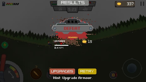 5、主界面上方展示玩家的飛行距離,左上角呈現(xiàn)油量顯示。每過一關(guān),都會給予你數(shù)量不同的金幣獎勵。