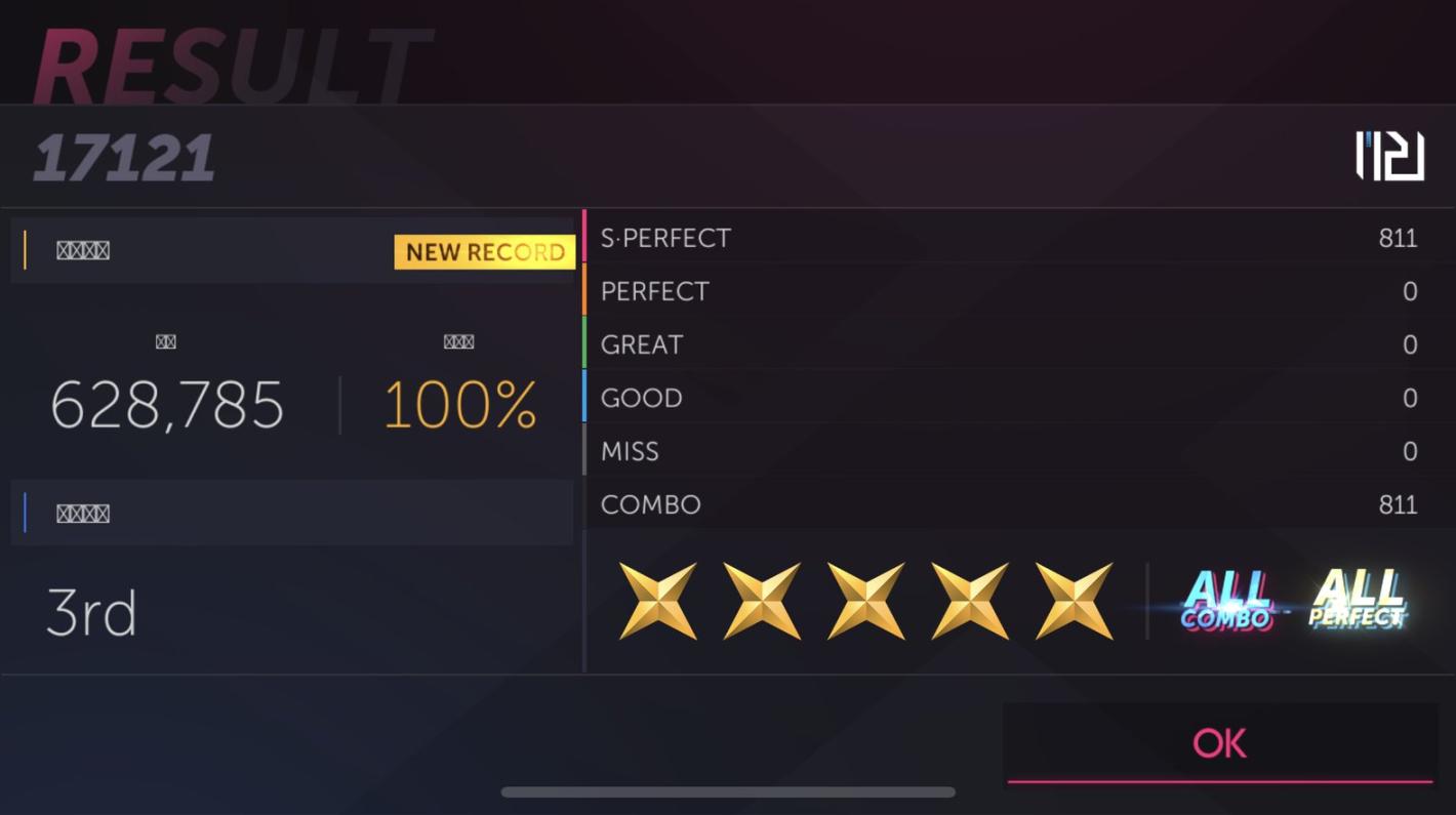 ALL PERFECT:在沒有MISS和除S·PERFECT的其他判定時完成某首歌曲。