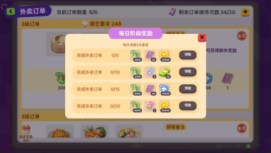累計完成5/10/15/20單領取外賣的進度獎勵,會獎勵大量獎勵。