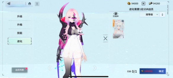 4、升格需消耗同名角色,將SR升格為SSR需要四個相同角色,SSR為最高等級。之后便是進化,進化需消耗同等級稀有度的材料。