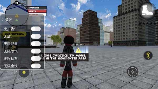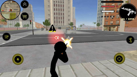 在操作方面,左側可實現移動與加速,右側對應繩索操控、攻擊(還能結合跳躍操作)以及單純的跳躍功能。右上側則用于武器更換,同時血量與經驗的顯示會實時更新,清晰明了。玩家能憑借自由多樣的玩法,與其他幫派人物展開交火。在交火過程中,成功擊殺敵人可獲取經驗,擊殺數量增多會產生星級。一旦星級出現,警察以及附近的其他角色便會格外 “關照” 你,對你發起猛烈進攻。此時,如何在激烈的對抗中存活下來,以及怎樣將其他人物成功擊殺,就成了你需要完成的任務。