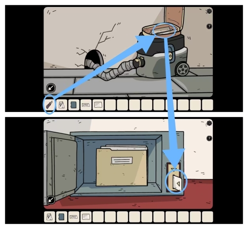 11、回到暗室將軟管裝在吸塵器上打開開關(guān),再用美工刀割開袋子拿到「磁卡」,接著回二樓右側(cè)房間用其打開保險(xiǎn)柜,點(diǎn)擊文件夾進(jìn)入劇情