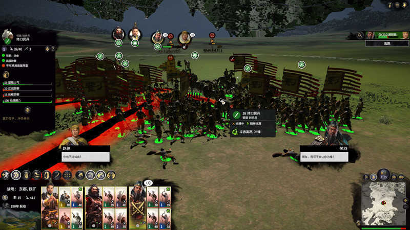 1. 武將實力強勁,背沖能夠沖垮無數隊步兵。實際上,這相當于一個血量極厚、攻擊力超高且士氣幾乎不會崩潰的單體騎兵,因此開啟無雙是常見打法。