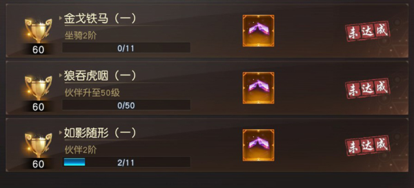 2、伙伴培養: 玩家能夠借助提升坐騎與伙伴的等級及階級,從而獲取成就,并領取鉆石獎勵。