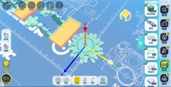為便于操作,在正式著手搭建之前,要把設置里的編輯視角切換成【上帝視角】。于機關內找到“齒輪”并拖出來,就能完成“齒輪”擺放的基礎操作。除常規擺放外,點擊【旋轉】可將“齒輪”旋轉至豎起狀態,還能通過調整【縮放】來改變“齒輪”大小以及側面寬度。待尺寸設定好后,點擊左側的【復制】按鈕,就能批量復制已調整好的組件,從而達到節省時間、提升效率的目的。