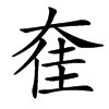 kuí 星名,二十八宿之一。 ◎ 〔奎寧〕藥名,白色結(jié)晶或無(wú)定形粉末,是治療瘧疾的特效藥。亦稱“金雞納堿”、“金雞納霜”。 ◎ 姓。