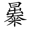 bào,pù 曬:曝曬(用強烈陽光照曬)。一曝十寒(喻無恒心)。